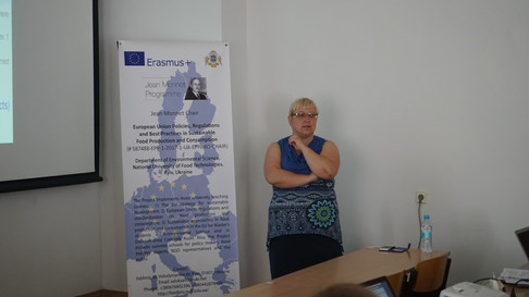Учасник проекту Жан Моне Модуль «Екологічна політика і право ЄС», доцент кафедри міжнародного права та порівняльного правознавства НУБіП Людмила Головко ознайомила з сучасним станом щодо адаптації законодавства України до законодавства ЄС у сфері безпечності та якості харчових продуктів.